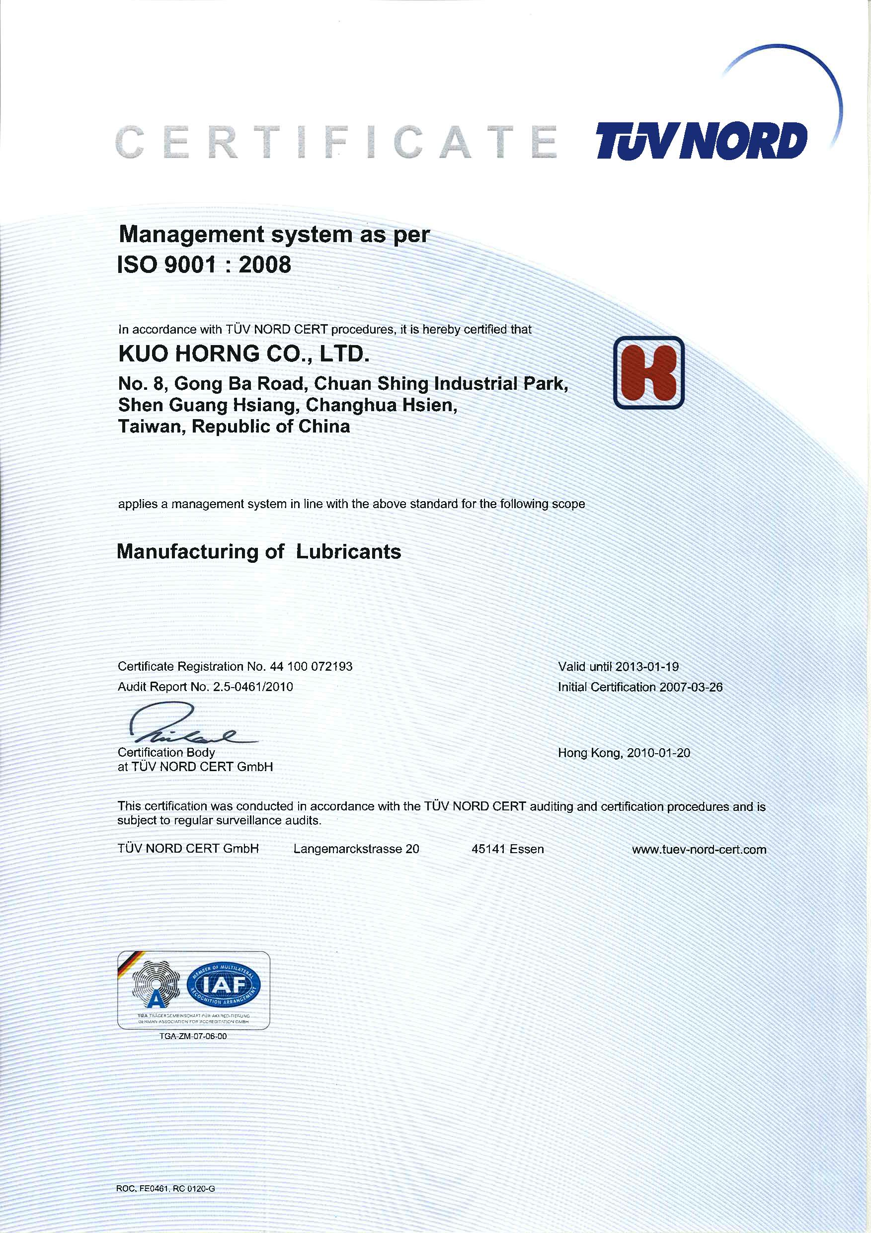 為了提昇產品品質,國宏特別引進法國ABB自動化生產系統,以精確計算油品添加的劑量;而在生產、灌裝的過程中,更是經過一再的抽樣、檢驗及測試。如此嚴密的監控,不僅取得了ISO9001國際品質管理認證及ISO14001國際環境管理認證,更實現了我們對您的承諾!